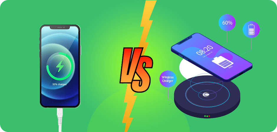 Have you ever heard about the Wireless charger that has gained so much popularity in the world last almost 15 years Bart many people don’t know about the wireless chargers that have become the part of market nowadays. This is the latest technology that has been introduced in the world. Wireless charges are becoming the trend on social media as they want to make it popular like the wired charger. In this blog, we will explore new facts and interesting things that you didn’t know before about wireless charging vs wired charging, without wasting time. Let’s get into: Necessity Guide About 7 Wireless Charging vs Wired Charging What Is Wireless Charging? With wireless charging, there is no longer a need for wires or connectors to charge electronics, which is a huge benefit. Your smartphone, earphones, or other compatible gadget will start to charge when you place it on a wireless charging pad or stand. The electromagnetic induction concept is the secret behind wireless charging’s enchantment. An electromagnetic field is created around the wireless charger by energy passing through a transmitter coil. This field creates an electric current in a receiver coil within your compatible gadget when you place it on the charger, charging the battery. Different brands and kinds of wireless chargers use different standards, thus not all devices can be used with them. Qi (pronounced “chee”), created by the Wireless Power Consortium (WPC) and authorized by the majority of significant smartphone manufacturers, is the most widely used wireless charging standard. It will be simpler for you to switch to wireless charging thanks to this standard, which guarantees compatibility with a wide variety of gadgets and chargers. What is Qi Inductive Wireless Charging? The Wireless Power Consortium is developing Qi, which is derived from the Chinese word qi, an open interface standard that defines wireless power transfer via inductive charging over distances of up to 4 cm (1.6 inches). In essence, electromagnetic fields are used in wireless charging, also known as wireless power transfer, to safely transfer electricity from a transmitting source to a receiving device to charge or recharge a battery. Furthermore, it accomplishes this without requiring a physical connection, as the name implies. Easy, effective, and secure, Numerous devices are powered or charged by qi. Cellphones, cordless kitchen appliances, and other items fall under this category. Qi delivers an exceptional standard by utilizing both resonance and induction technologies. What Is Wired Charging? The usual method that has been powering our devices for decades is wired charging. It’s the simple procedure that we’re all familiar with: you take a cable, insert one end into the USB port on your device, and the other end into the charging port on your device, and boom! Your gadget begins to charge. The direct electrical connection that cable charging creates between the gadget and the power source is its fundamental component. Fast and constant power transfer is made possible by this physical connection, guaranteeing that gadgets are fully charged and operational. Compatibility with a large variety of devices is provided by wired charging, including computers, cameras, tablets, and smartphones. It is dependent on common standards like USB, which includes USB-C, micro-USB, and Lightning ports for Apple devices. Wireless Charging vs Wired: Which Is Better? With the growing number of times we use our electronics for work and play, the effectiveness and practicality of charging solutions have become essential. Wireless charging competes with the conventional, tried-and-true dependability of wired charging due to its increasing popularity and the draw of a cable-free experience. So, the question that now has to be answered is: which pricing method is best for you? This tutorial examines the differences between the two charging techniques, weighing the benefits and drawbacks of wireless charging vs wired charging to give you the information you need to choose the one that best suits your digital lifestyle. Now let’s get started! Wireless vs Wired Charging: Which is Better for Battery Life? To begin with, any type of battery charging wears it out. External variables such as heat can increase this year, lowering the battery’s capacity over time. And this is where wireless charging falls short of traditional wired charging methods. While charging, not all of the electricity drawn from a wall socket makes it to your device’s battery. Wireless charging is usually believed to be approximately 80% efficient. In practice, this figure could dip as low as 50%, depending on how well the coils in the charger and smartphone are aligned. Needless to say, cable charging is significantly more efficient because a copper line carries electricity exceptionally well and has no physical gaps. We evaluated 100W wired and wireless Charging to validate this hypothesis in the real world. Coming back to wireless charging, any energy that does not reach your device is turned into heat. And, as previously said, repeated exposure to heat will harm your device’s battery. Furthermore, using a thick case on your smartphone may hinder it from cooling down rapidly enough. Factors to Consider in Choosing Between Wireless vs Wired Charging There are several important considerations when choosing between wireless charging vs wired charging, and each one has a unique impact on how well you charge. Here’s a closer examination of each of these factors: Charging Speed Because there is a direct connection between the device and the power source, wired charging allows for higher charging speeds. This is especially true for USB-C and Qualcomm Quick Charge technologies, which may substantially cut down on the amount of time required for compatible devices to charge. However, compared to wired options, wireless charging is typically slower. Longer periods to get a full charge are ca
